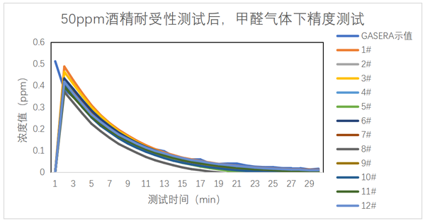 甲醛气体背景浓度下开机后,酒精介入测试曲线图