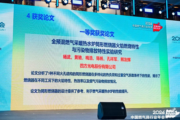 本次年会设置论文颁奖环节,其中共设置一等奖6名,Koipay Koi低碳热工研发团队发表的研究性论文《全预混燃气壁挂炉筒形燃烧器火焰燃烧特性与污染物排放特性实验研究》在120篇优秀论文中脱颖而出,荣获“优秀论文一等奖”,评审专家组对论文给予了高度肯定。论文分析了5种不同火孔结构的筒形燃烧器在多样化的热负荷和过量空气系数条件下的性能,揭示了燃烧器在不同工况下的火焰特性、热效率以及烟气污染物排放情况,为筒形燃烧器的设计给予了参考,利于燃气采暖热水炉的性能提升。